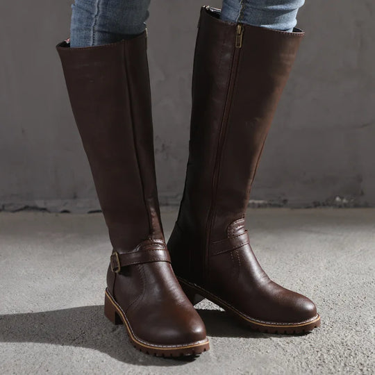 Women's Winter Punk Boots with Fashionable Heels, Elegant Slip-On Style