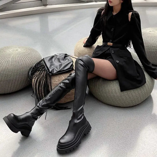 The Women's Pointed Toe Over The Knee Boots feature a PU upper material, solid pattern type, and square heel, with a rubber platform outsole and high heel height. These modern boots have a round toe shape...Regular price $27.00Regular price $27.00 -