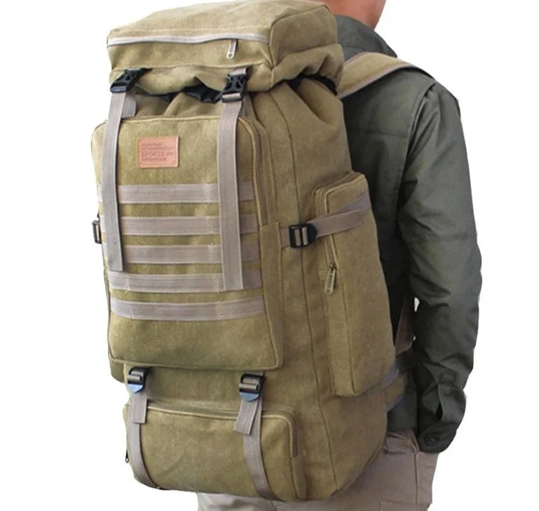 Esta mochila táctica para acampar y hacer senderismo, confeccionada por expertos con LONA duradera y forro de POLIÉSTER, ofrece un amplio espacio de almacenamiento con su capacidad de 56 a 75 litros.