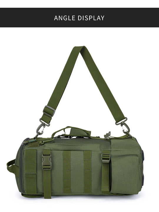 Mochila de pesca táctica con bolsa para aparejos y portacañas