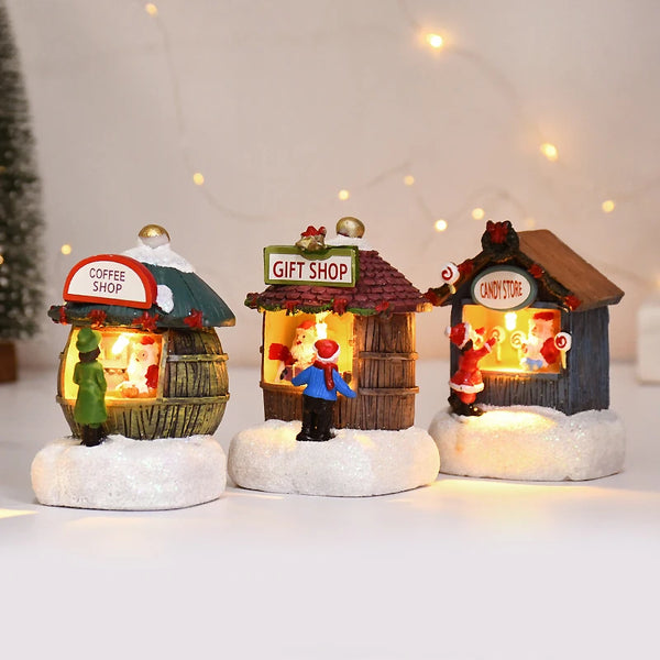 Adornos de resina para tienda de regalos de Papá Noel con luz LED navideña 2025
