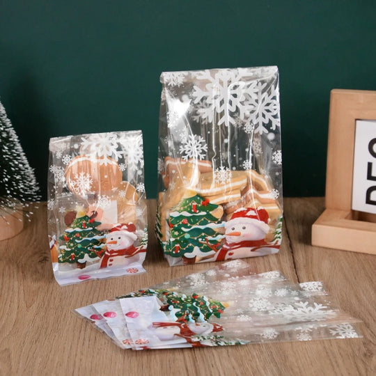 25/50 bolsas de plástico para galletas y dulces con forma de muñeco de nieve, para envolver regalos y hornear