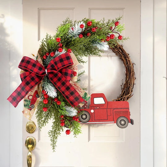 Esta guirnalda para puerta navideña de 38 cm está elaborada con cuidado y presenta un encantador automóvil de madera, bayas rojas y una decoración festiva de Feliz Navidad. Perfecto para agregar un toque de alegría navideña...Precio regular $16.20Precio regular $16.20