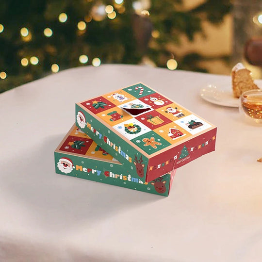 Caja de regalo navideña de 2 piezas con calendario de adviento de cuenta regresiva para niños de 12 cuadrículas