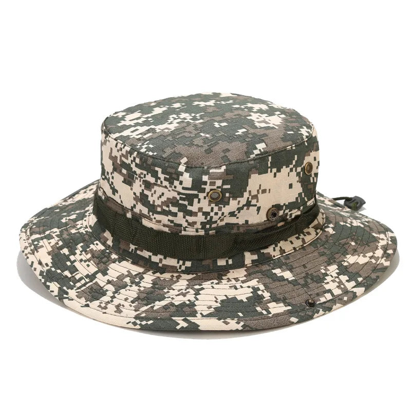 Fabricado con una resistente mezcla de poliéster y algodón, nuestro sombrero de pescador con camuflaje verde y verde claro es la opción perfecta para cualquier amante de las actividades al aire libre. Con una circunferencia de cabeza de 59 ± 1 cm y un diseño elegante, este sombrero es práctico y moderno.