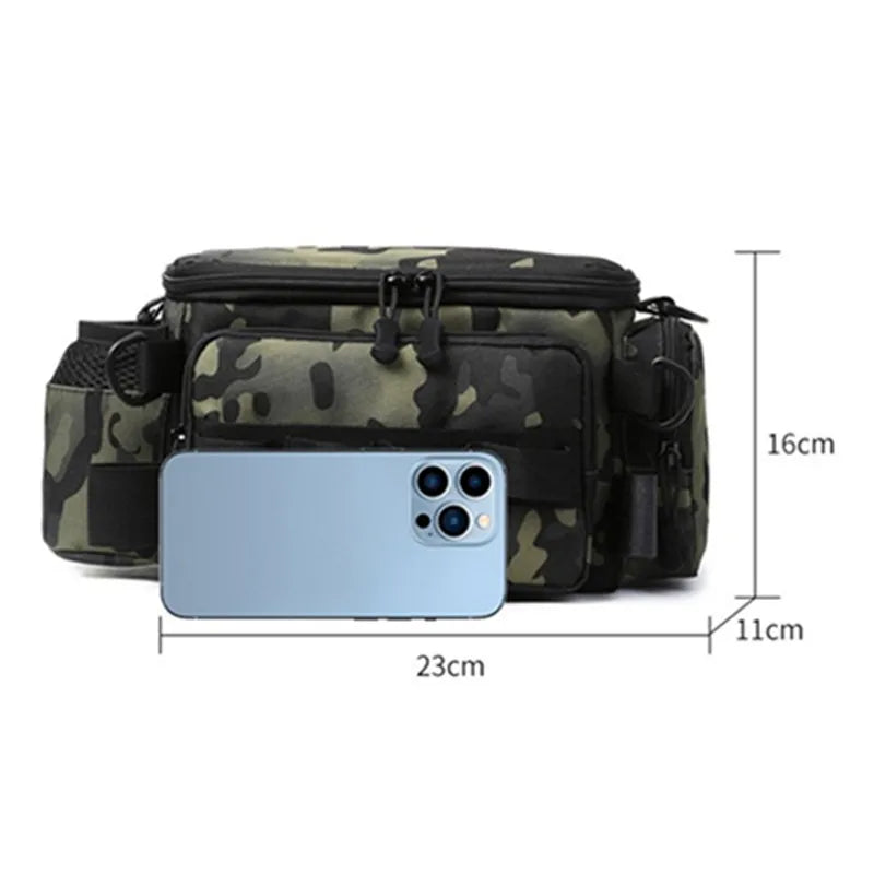 Bolsa de pesca elegante y bonita: ¡Perfecta para cualquier aventura! Fabricada en nailon 600D, garantiza durabilidad. Mantén tu equipo organizado con sus múltiples compartimentos. Elige entre negro, negro CP o negro camuflaje.