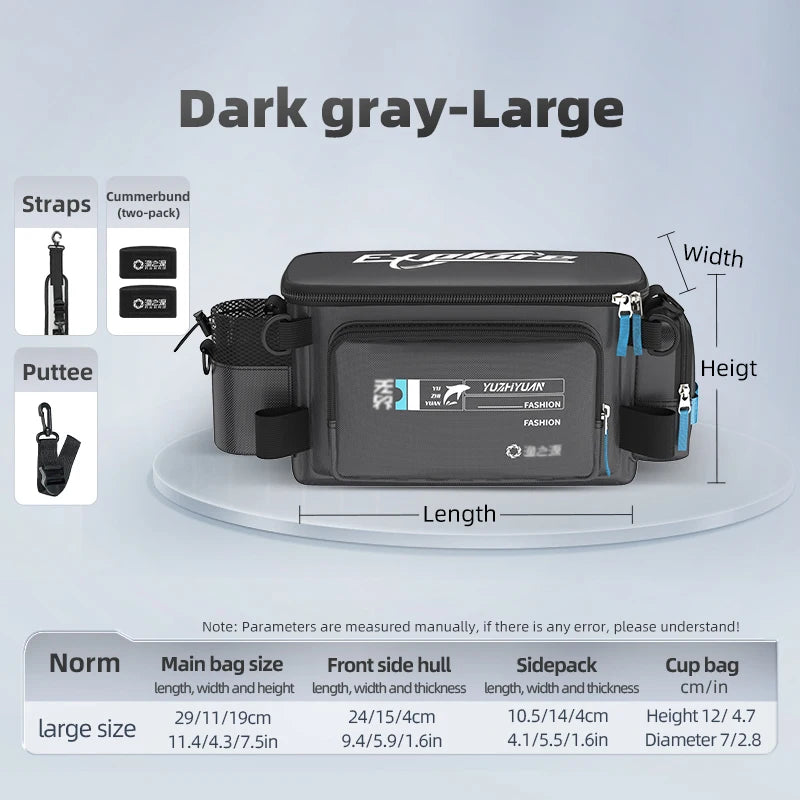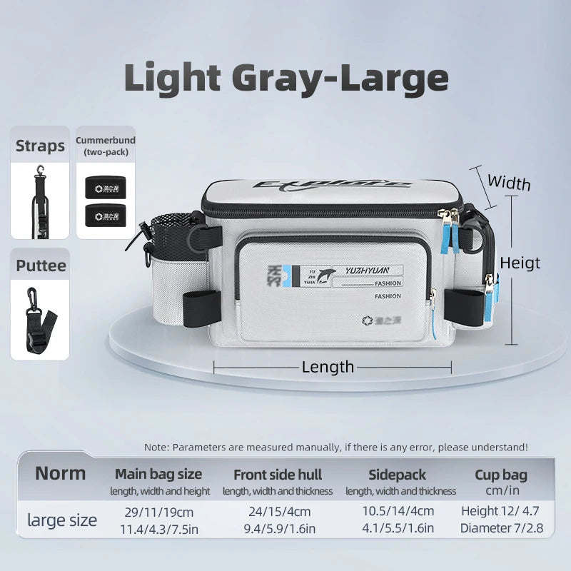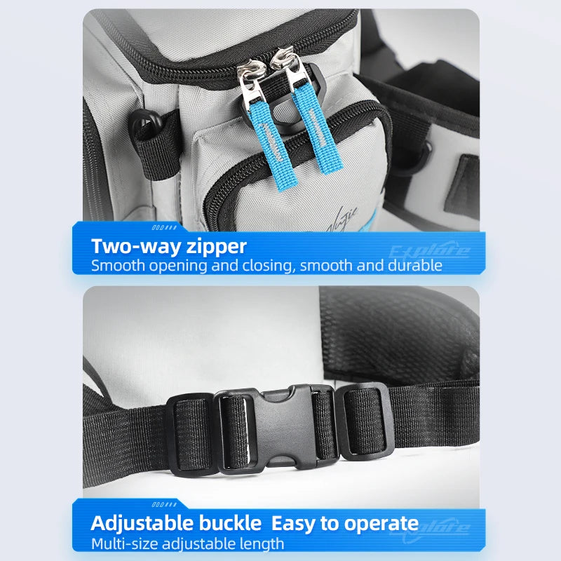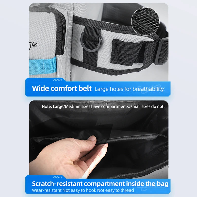 Los divisores de malla transpirable, el cinturón ancho y el diseño liviano hacen que la bolsa de aparejos de pesca multiusos sea esencial para cualquier entusiasta de la pesca.