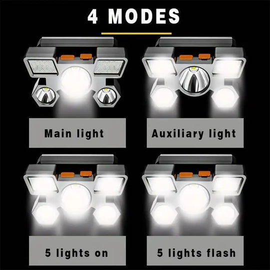 Linterna frontal con sensor de movimiento LED COB, impermeable, recargable por USB