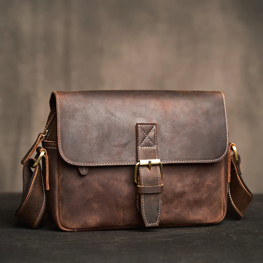 Proteja su cámara con estilo con nuestro bolso de hombro de lona encerada al óleo vintage