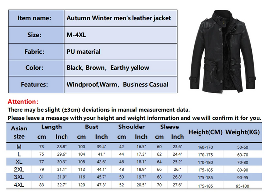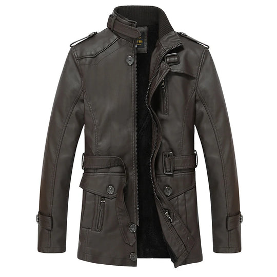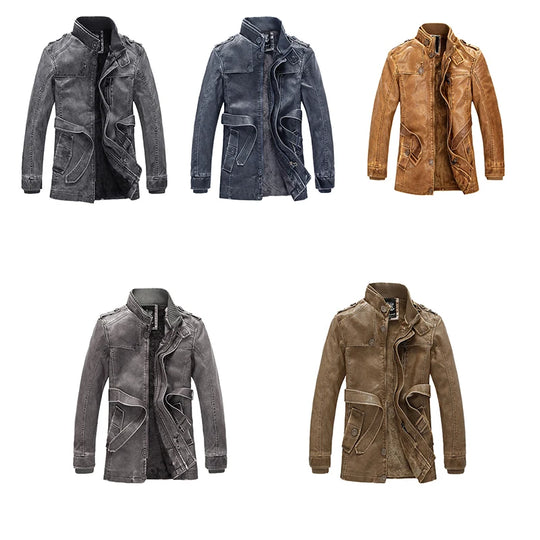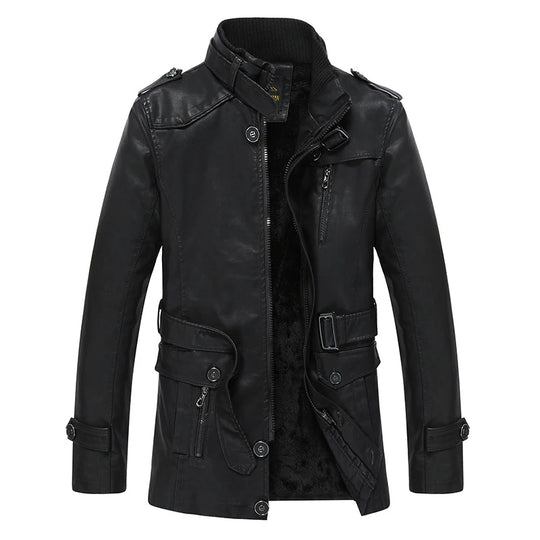Chaqueta de cuero sintético con forro polar para hombre, talla grande