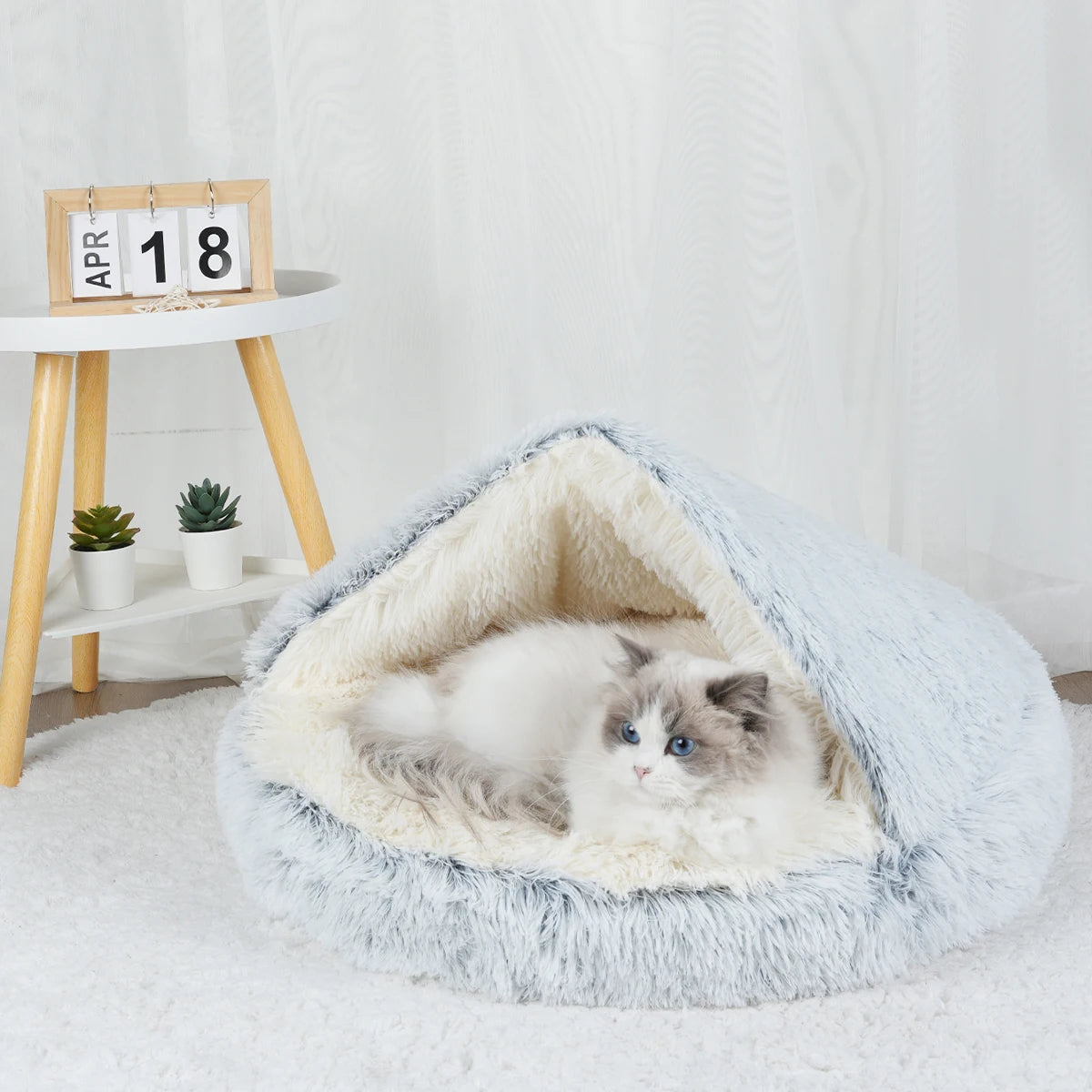 Esta acogedora cama-tienda para gatos está confeccionada con un suave material de felpa, diseñada para mantener a tu felino abrigado y cómodo. Su tejido transpirable garantiza un ambiente de descanso agradable, lo que la convierte en el accesorio ideal tanto para gatos como para gatitos. Perfecta como cama para mascotas, combina calidez y comodidad para crear un rincón favorito para tu mascota.
