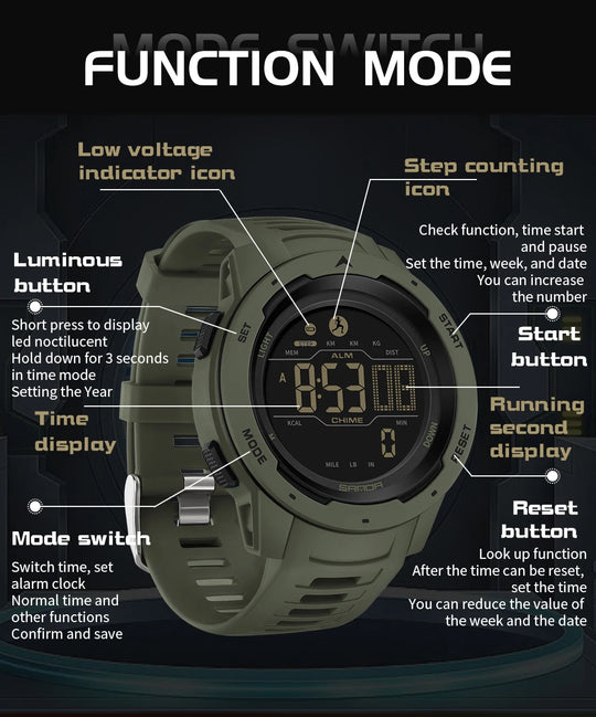Reloj deportivo digital de inspiración militar para hombre