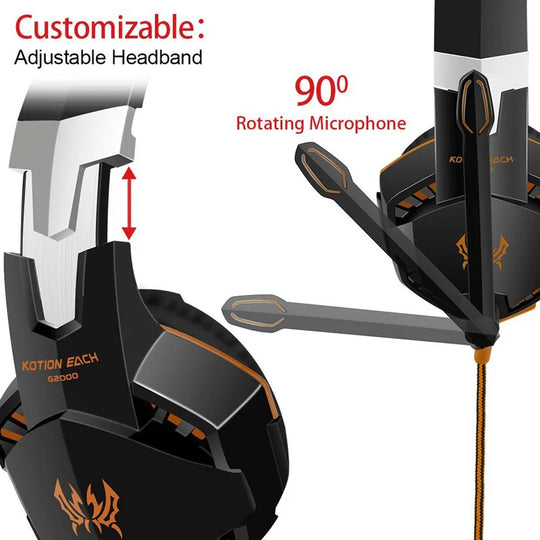 Kotion EACH G2000 Auriculares estéreo para juegos con graves profundos, luces LED y micrófono