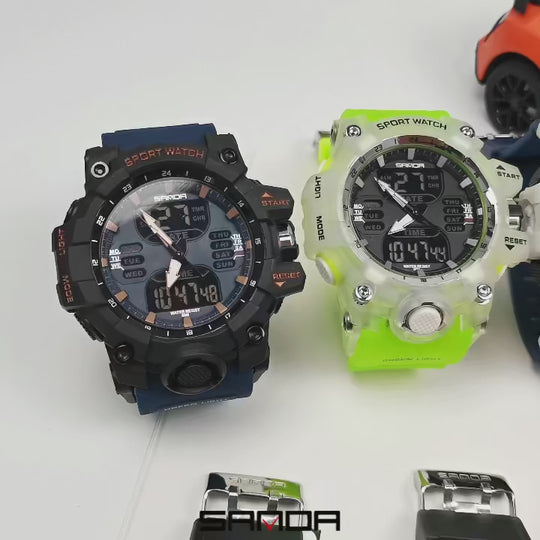 Reloj deportivo resistente al agua con pantalla dual para hombres