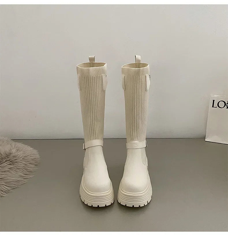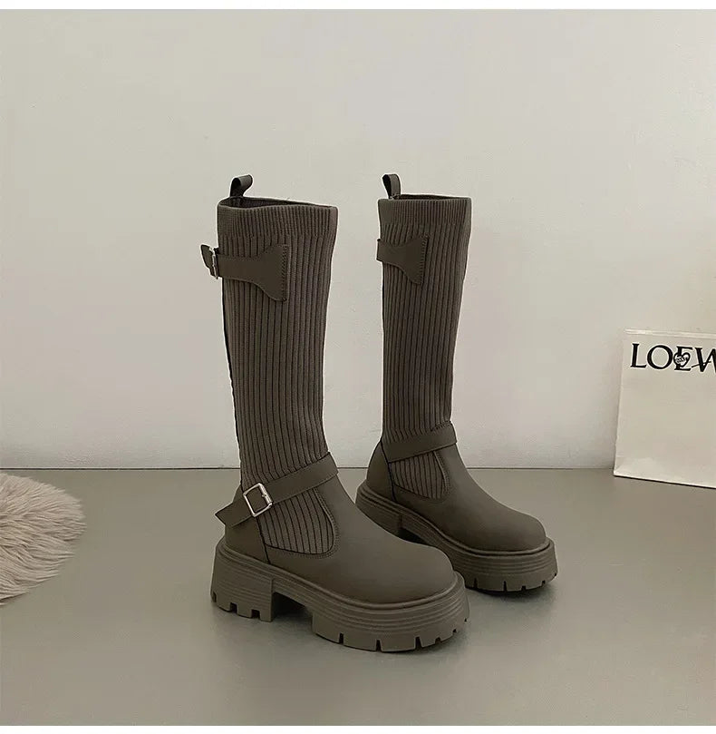 Estas botas largas para mujer, de inspiración retro y elegancia atemporal, están diseñadas con modernas suelas de caucho y empeine de tela elástica. Son perfectas para el invierno, con plantillas de tela y tacones cuadrados para mayor comodidad.