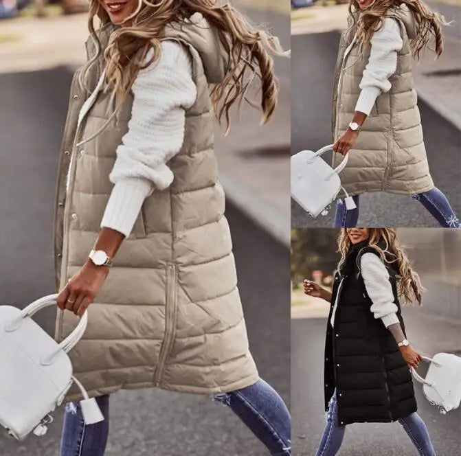 Este chaleco está confeccionado en una mezcla de algodón y poliéster, con un diseño entallado y un estilo elegante. Es ideal para mujeres de mediana edad que buscan una prenda exterior informal y refinada.