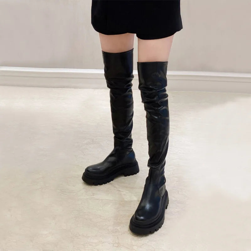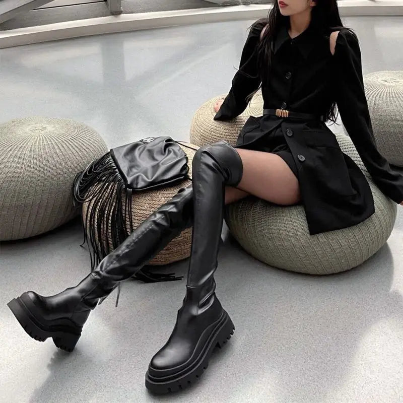 Además, tienen un estilo punk moderno con botas por encima de la rodilla y caña de tela. Ideales para quienes buscan moda.